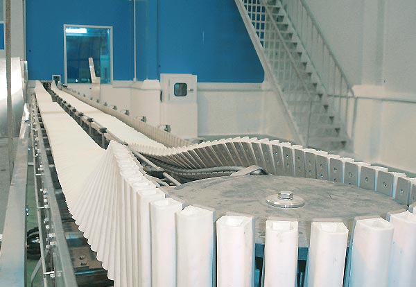 空瓶風(fēng)送系統廣泛應用在飲料行業(yè)的空瓶輸送中,輸送速度快、效率高,可滿(mǎn)足高速灌裝機的需要;輸送線(xiàn)路長(cháng)、布置形式靈活多樣,可水平輸送、上下坡輸送和轉彎輸送等。